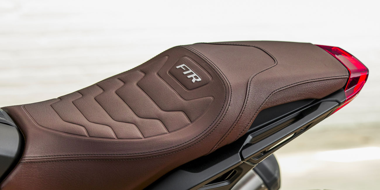 Avec son style musclé finement ciselé et son élégance, la FTR Rally est un concentré de fonctionnalité et de style, qui puise son inspiration dans son passé de championne de flat track. Des pneus à crampons, une selle Aviator, un saute-vent Rally, le tout rehaussé de finitions mates... La FTR Rally est la preuve même que performance, style et modernité sont parfaitement compatibles.