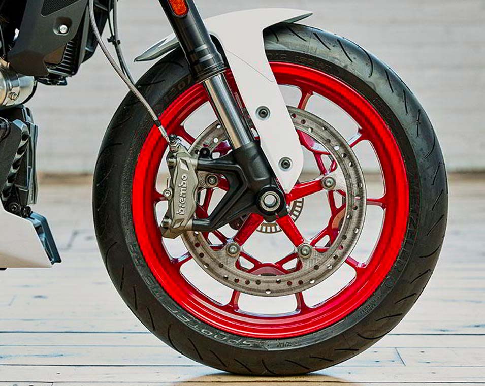 | Equipements Standard | 3 modes de conduite (pluie, standard, sport), ABS sensible à l'angle d'inclinaison, contrôle de la stabilité, contrôle de la traction, anti-wheelie, port de charge USB, régulateur de vitesse. |
